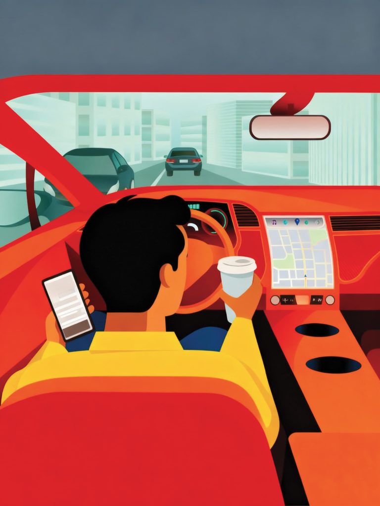 Avec une voiture autonome, c’est l’énergie du moteur et le GPS qui font tout.